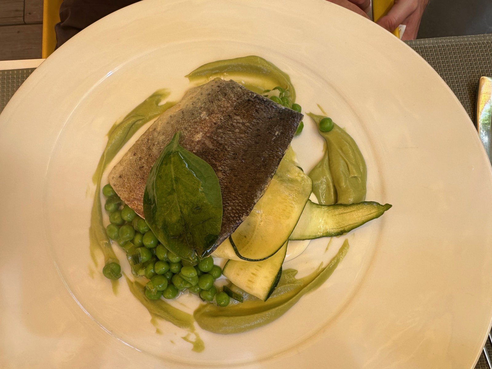 filet de dorade avec des tagliatelles de courgettes.